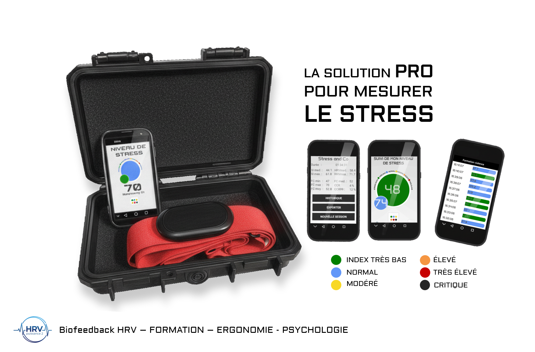 Nos modules portatifs enregistrent la variabilité de la fréquence cardiaque (HRV) et affichent en temps réel plusieurs indicateurs clés : indice de stress, récupération, charge d’entraînement…